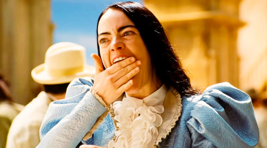 Forgetting the 101 CGI sunsets, there’s a lot about Poor Things that’s interesting – from its enchanting score, to the use of B&W vs colour, to fearless acting from all involved. This was Mark Ruffalo’s best performance in years – anyone would think he was in Grand Budapest hotel with that campy ego – he’s having one hell of a time. Emma Stone is mad as a hatter, her frolicking antics include: punching a baby, smashing everything in the home, and inserting all kinds of objects into her vagina. Until she is suddenly nude in every scene. It can only be assumed that the category she’ll be nominated for this year is “Best Actress in a porno”. Definitely a career all-time low for Stone.